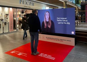 Røde Kors præsenterer en ny kampagne, der skal sætte fokus på ensomhed blandt danskere. Ifølge den seneste sundhedsprofil fra Statens Institut for Folkesundhed føler 540.000 danskere sig ensomme, svarende til 10,8 procent af befolkningen. Kampagnen kører i storcentre på Frederiksberg, Lyngby, Randers og Aalborg i perioder fra marts til april.